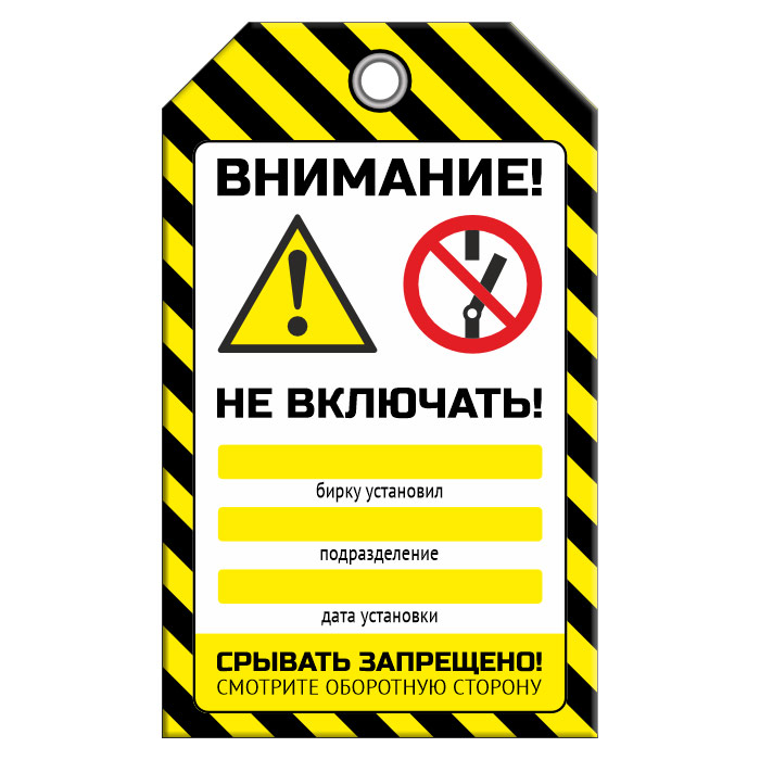 Бирка «НЕ ВКЛЮЧАТЬ!», 2-й вариант (1 шт., двусторонняя, пластик, 70х115 мм) в Великом Новгороде купить