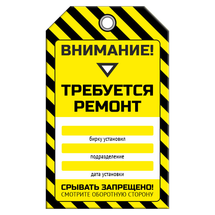 Бирка «ТРЕБУЕТСЯ РЕМОНТ!» (1 шт., двусторонняя, пластик, 70х115 мм) в Великом Новгороде купить