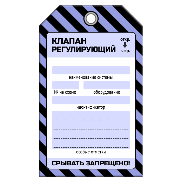 Бирка «КЛАПАН РЕГУЛИРУЮЩИЙ» (1 шт., односторонняя, пластик, 70х115 мм) в Великом Новгороде купить