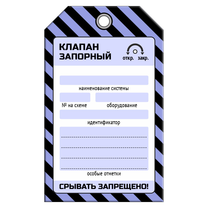 Бирка «КЛАПАН ЗАПОРНЫЙ» (1 шт., односторонняя, пластик, 70х115 мм) в Великом Новгороде купить