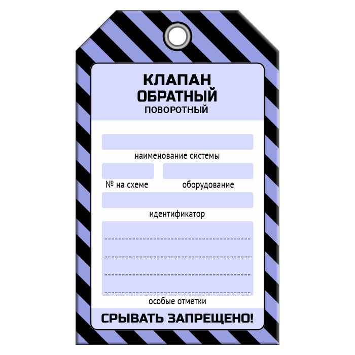Бирка «КЛАПАН ОБРАТНЫЙ ПОВОРОТНЫЙ» (1 шт., односторонняя, пластик, 70х115 мм) в Великом Новгороде купить