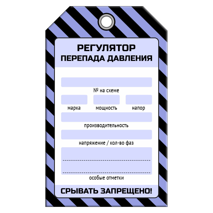 Бирка «РЕГУЛЯТОР ПЕРЕПАДА ДАВЛЕНИЯ» (1 шт., односторонняя, пластик, 70х115 мм) в Великом Новгороде купить