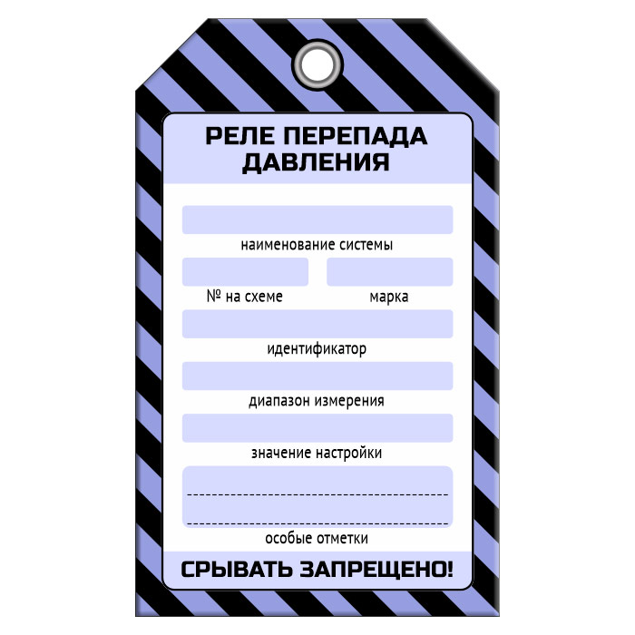 Бирка «РЕЛЕ ПЕРЕПАДА ДАВЛЕНИЯ» (1 шт., односторонняя, пластик, 70х115 мм) в Великом Новгороде купить