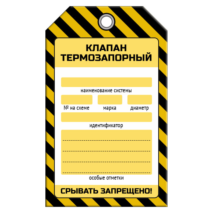Бирка «КЛАПАН ТЕРМОЗАПОРНЫЙ» (1 шт., односторонняя, пластик, 70х115 мм) в Великом Новгороде купить