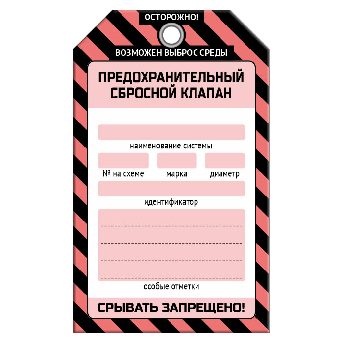 Бирка «ПРЕДОХРАНИТЕЛЬНЫЙ СБРОСНОЙ КЛАПАН» (1 шт., односторонняя, пластик, 70х115 мм) в Великом Новгороде купить