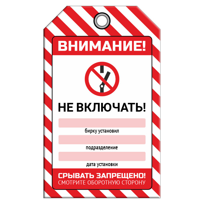 Бирка «НЕ ВКЛЮЧАТЬ!» (1 шт., двусторонняя, пластик, 70х115 мм) в Великом Новгороде купить