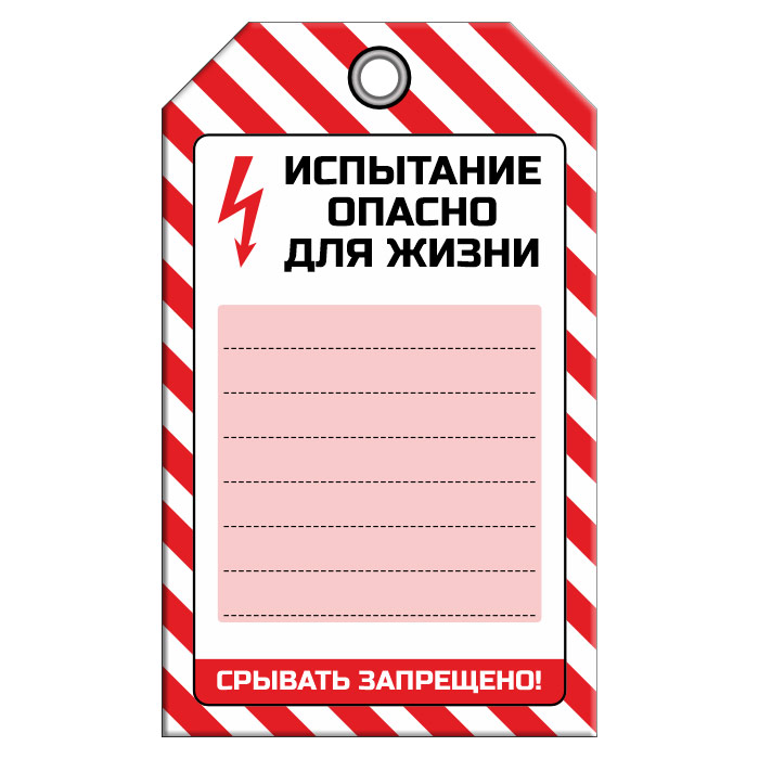 Бирка «ИСПЫТАНИЕ ОПАСНО ДЛЯ ЖИЗНИ» (1 шт., односторонняя, пластик, 70х115 мм) в Великом Новгороде купить