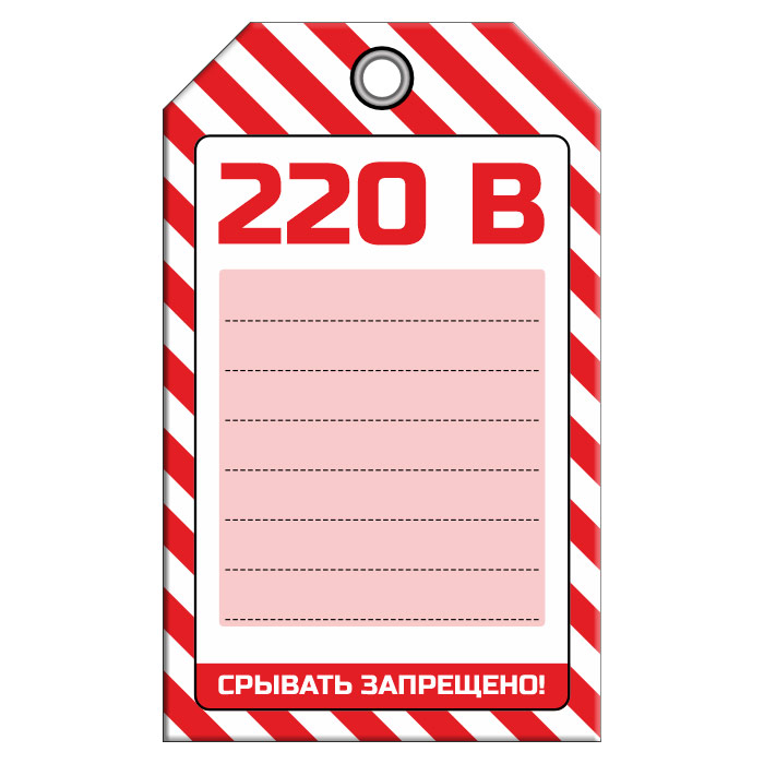 Бирка «НАПРЯЖЕНИЕ 220 В» (1 шт., односторонняя, пластик, 70х115 мм) в Великом Новгороде купить