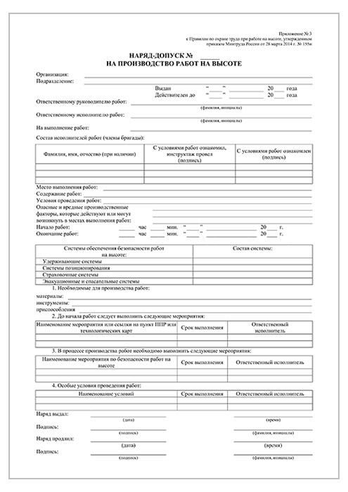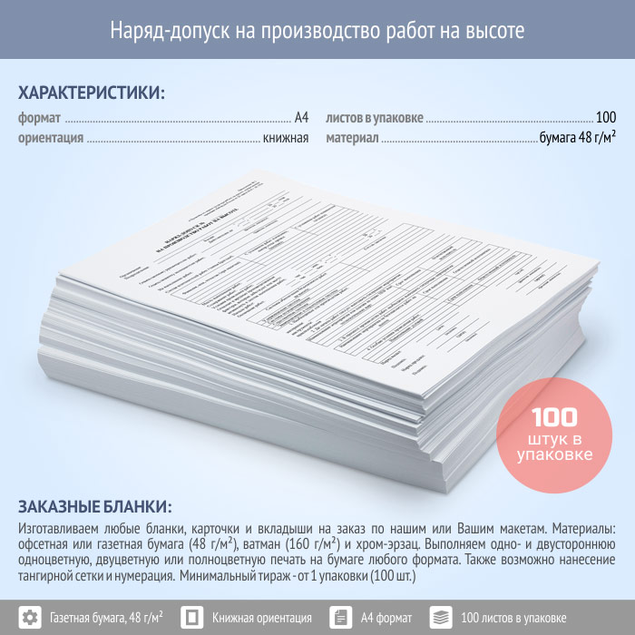 Наряд-допуск на производство работ на высоте (упаковка из 100 штук) в Великом Новгороде купить