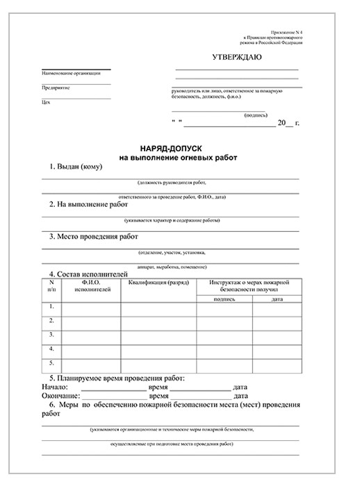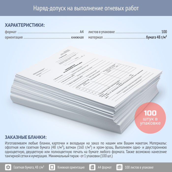 Наряд-допуск на выполнение огневых работ (упаковка из 100 штук) в Великом Новгороде купить