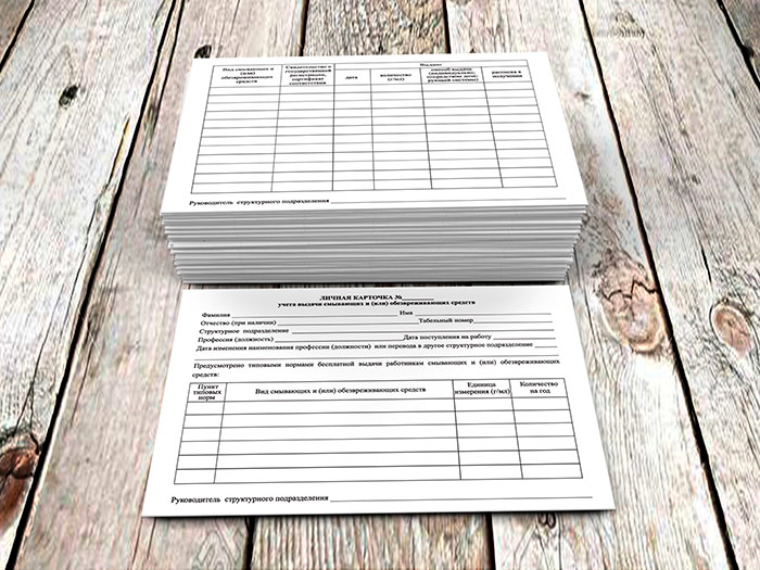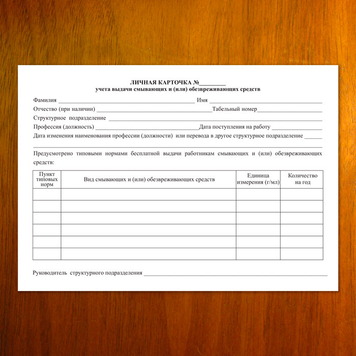 Личная карточка учёта выдачи смывающих и (или) обезвреживающих средств (упаковка из 100 штук) в Великом Новгороде купить
