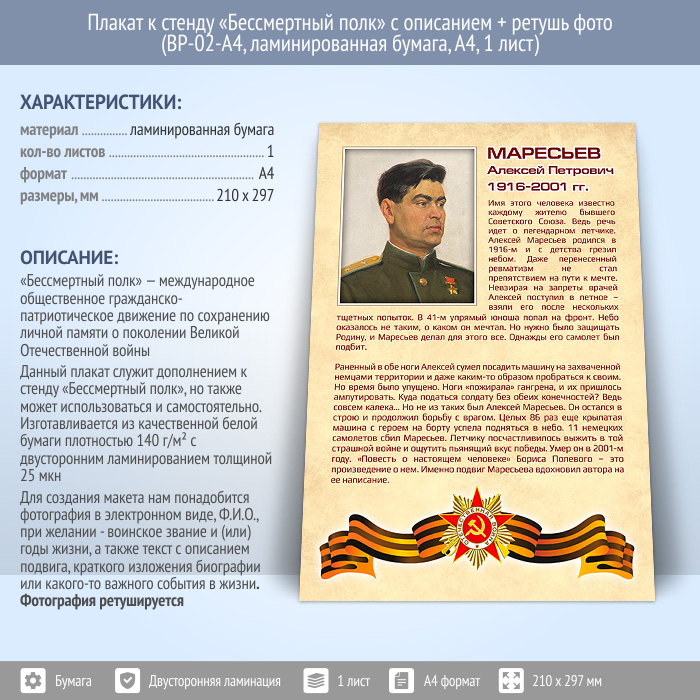 Плакат к стенду «Бессмертный полк» с описанием + ретушь фото (BP-02-A4, ламинированная бумага, А4, 1 лист) в Великом Новгороде купить