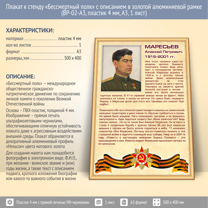 Плакат к стенду «Бессмертный полк» с описанием в золотой (матовой) алюминиевой рамке (BP-02-A3, пластик 4 мм, А3, 1 лист) в Великом Новгороде купить