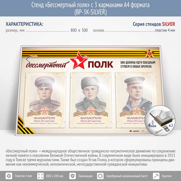 Стенд «Бессмертный полк» с 3 карманами А4 формата (BP-3K-SILVER) в Великом Новгороде купить