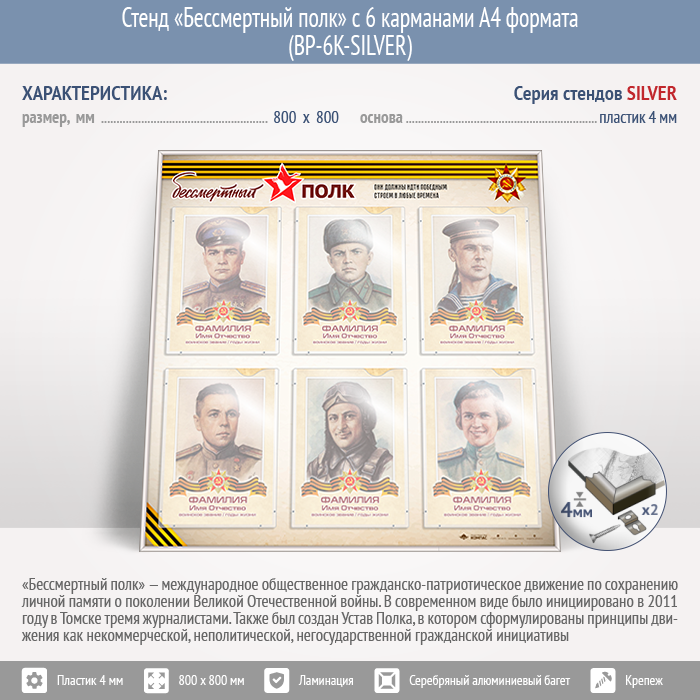 Стенд «Бессмертный полк» с 6 карманами А4 формата (BP-6K-SILVER) в Великом Новгороде купить