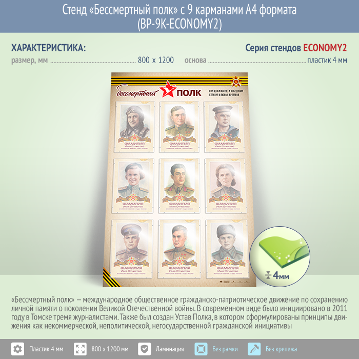 Стенд «Бессмертный полк» с 9 карманами А4 формата (BP-9K-ECONOMY2) в Великом Новгороде купить