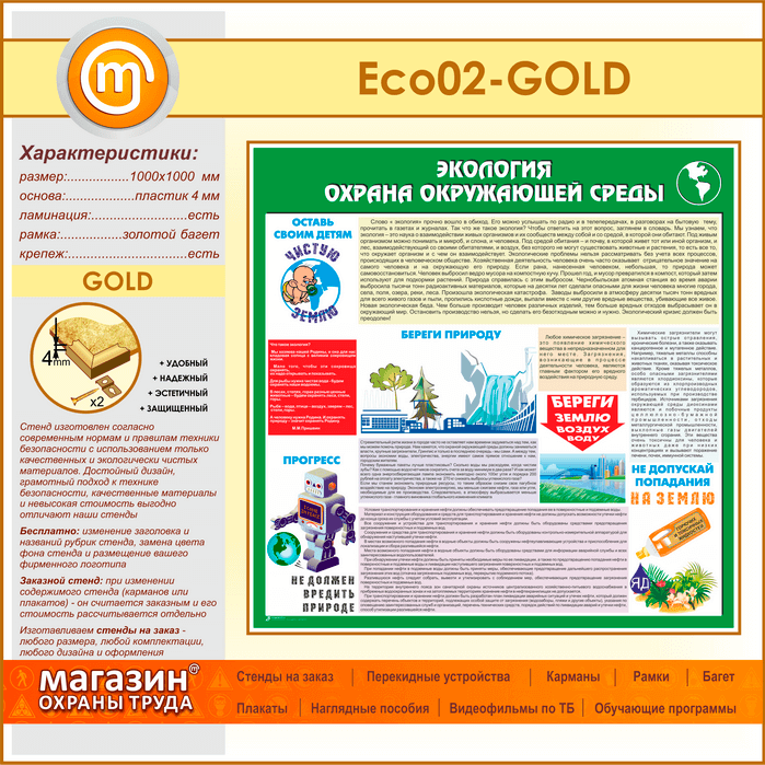 Стенд «Экология - Охрана окружающей среды» (ECO-02-GOLD) в Великом Новгороде купить