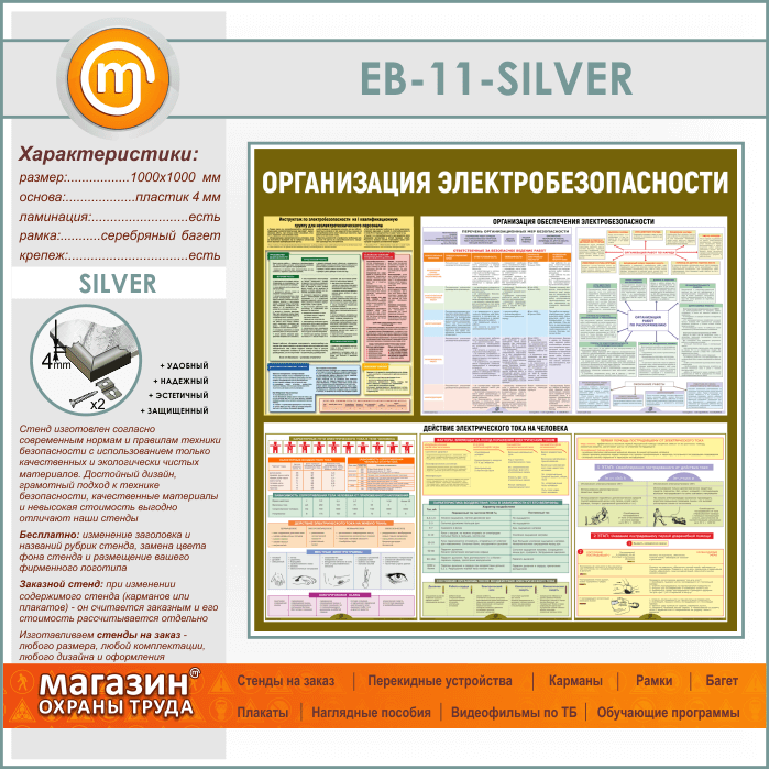 Стенд «Организация электробезопасности» (EB-11-SILVER) в Великом Новгороде купить