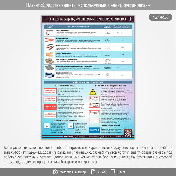 Плакат «Средства защиты, используемые в электроустановках» с QR (М-130, 1 лист) в Великом Новгороде купить