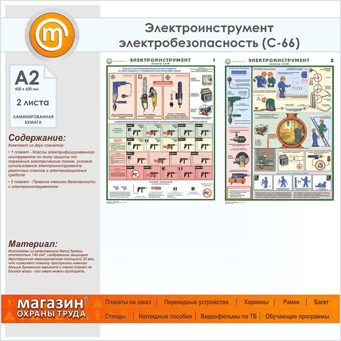Плакаты «Электроинструмент - электробезопасность» (С-66, ламинированная бумага, А2, 2 листа) в Великом Новгороде купить