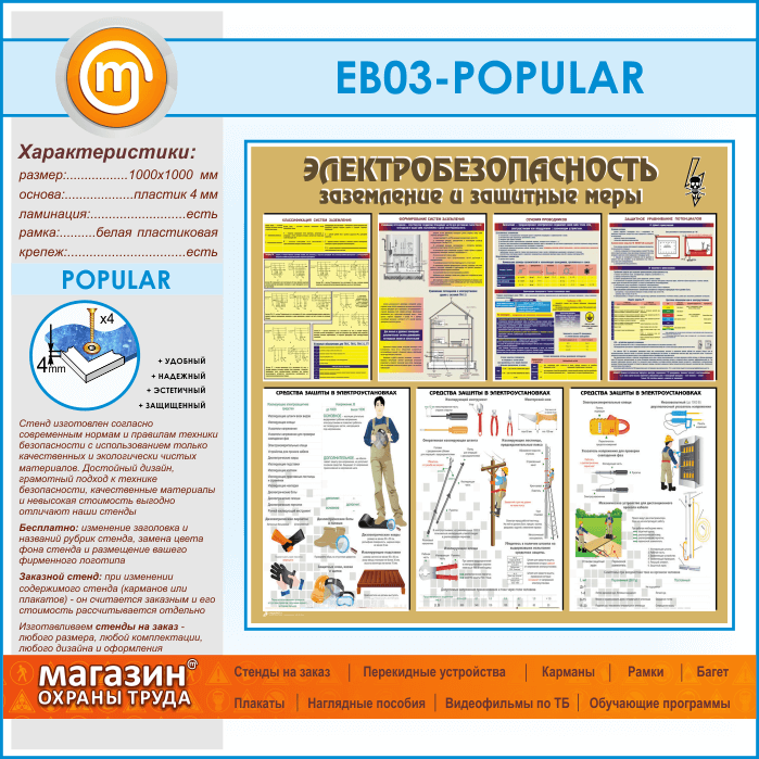 Стенд «Электробезопасность. Заземление и защитные меры» (EB-03-POPULAR) в Великом Новгороде купить