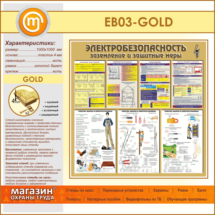 Стенд «Электробезопасность. Заземление и защитные меры» (EB-03-GOLD) в Великом Новгороде купить