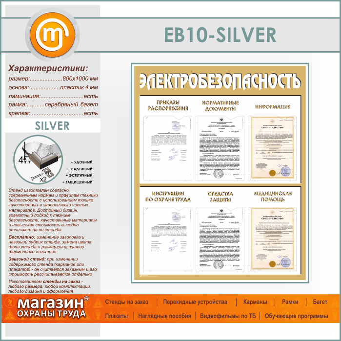 Стенд «Электробезопасность» с 6 карманами (EB-10-SILVER) в Великом Новгороде купить