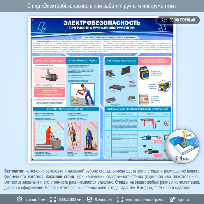 Стенд «Электробезопасность при работе с ручным инструментом» (EB-08-POPULAR) в Великом Новгороде купить