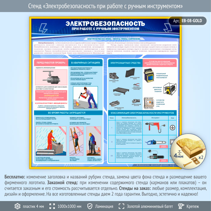Стенд «Электробезопасность при работе с ручным инструментом» (EB-08-GOLD) в Великом Новгороде купить
