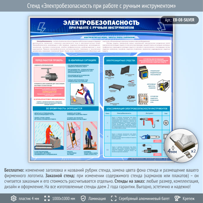 Стенд «Электробезопасность при работе с ручным инструментом» (EB-08-SILVER) в Великом Новгороде купить