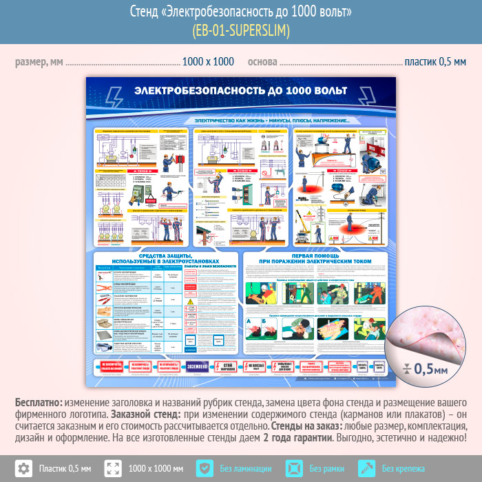 Стенд «Электробезопасность до 1000 вольт» (EB-01-SUPERSLIM) в Великом Новгороде купить