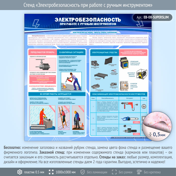 Стенд «Электробезопасность при работе с ручным инструментом» (EB-08-SUPERSLIM) в Великом Новгороде купить