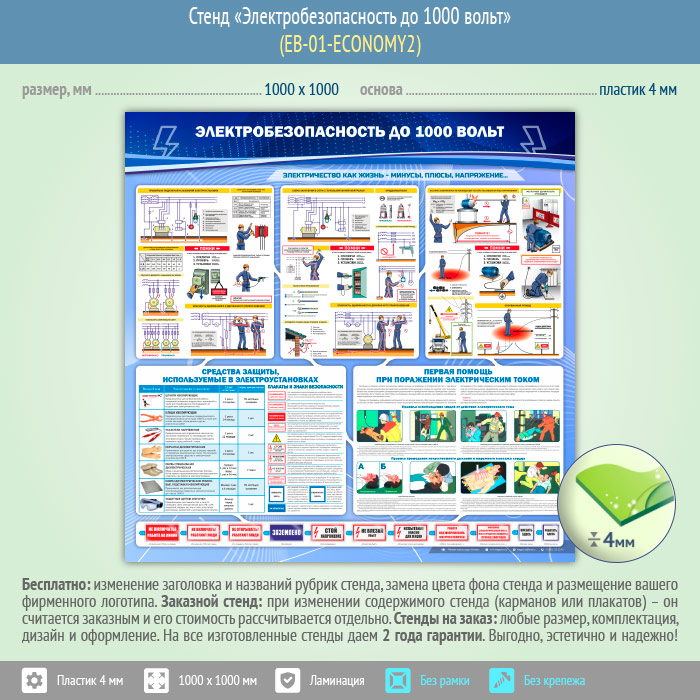 Стенд «Электробезопасность до 1000 вольт» (EB-01-ECONOMY2) в Великом Новгороде купить