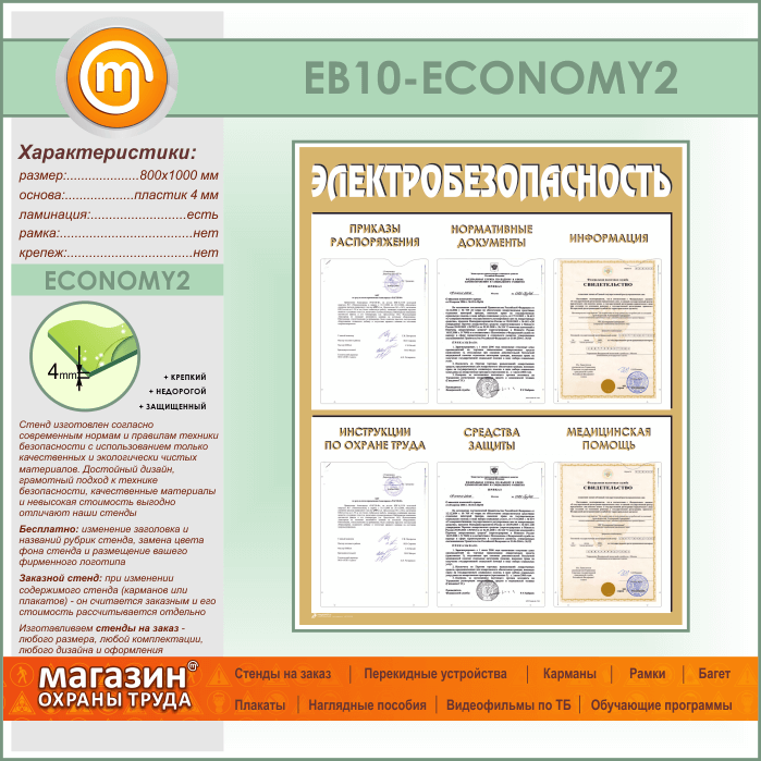 Стенд «Электробезопасность» с 6 карманами (EB-10-ECONOMY2) в Великом Новгороде купить