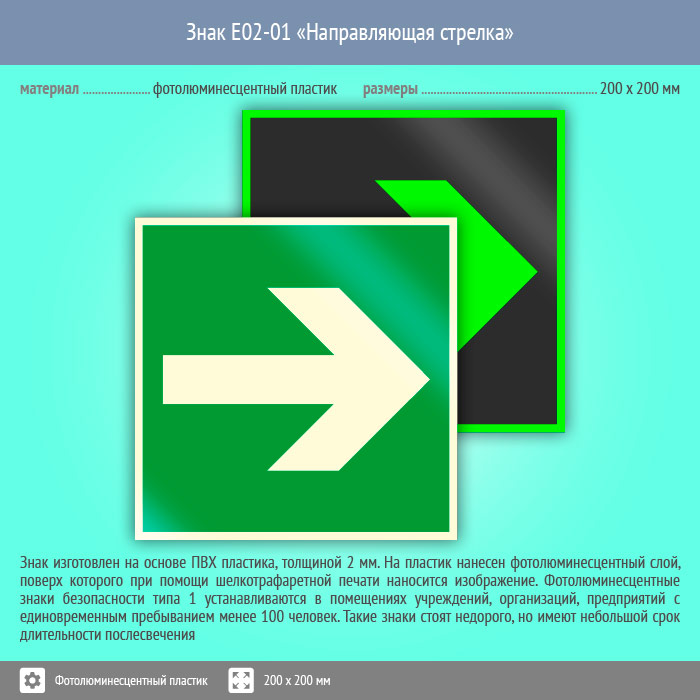 Знак E02-01 «Направляющая стрелка» (фотолюминесцентный пластик, 200х200 мм) в Великом Новгороде купить