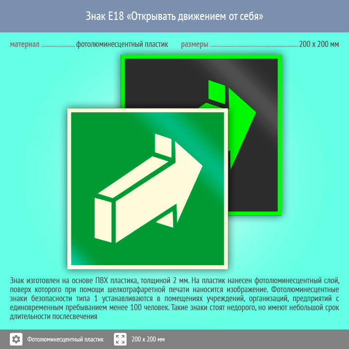 Знак E18 «Открывать движением от себя» (фотолюминесцентный пластик, 200х200 мм) в Великом Новгороде купить