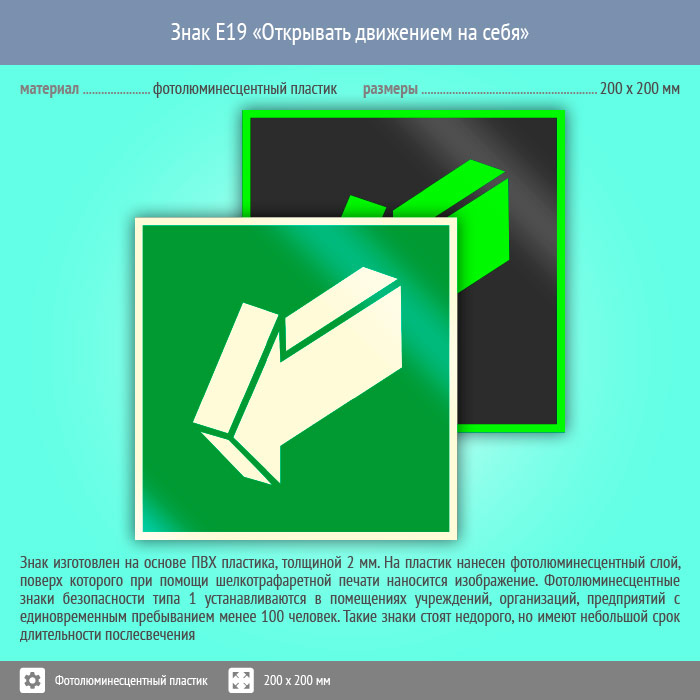 Знак E19 «Открывать движением на себя» (фотолюминесцентный пластик, 200х200 мм) в Великом Новгороде купить