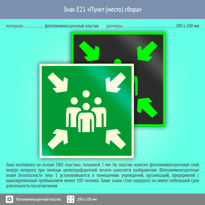 Знак E21 «Пункт (место) сбора» (фотолюминесцентный пластик, 200х200 мм) в Великом Новгороде купить