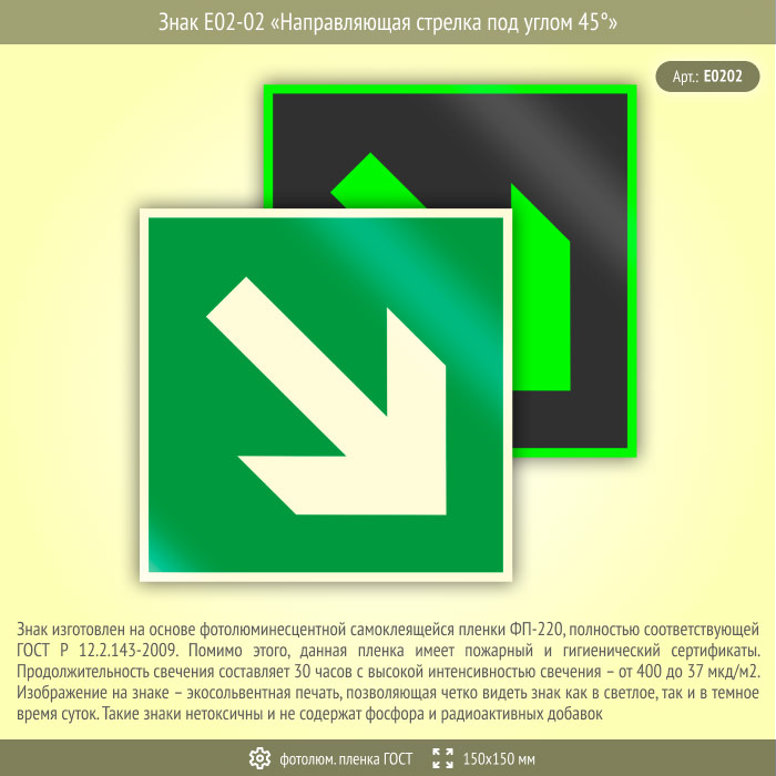Знак E02-02 «Направляющая стрелка под углом 45°» (фотолюминесцентная пленка ГОСТ 34428-2018, 150х150 мм) в Великом Новгороде купить
