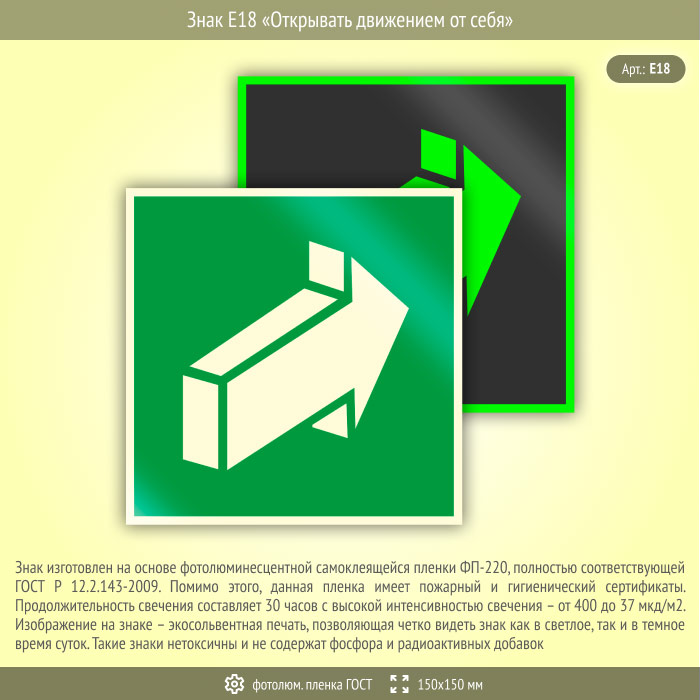 Знак E18 «Открывать движением от себя» (фотолюминесцентная пленка ГОСТ 34428-2018, 150х150 мм) в Великом Новгороде купить