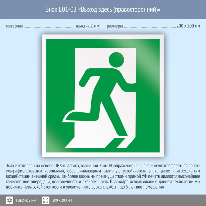 Знак E01-02 «Выход здесь (правосторонний)» (пластик, 200х200 мм) в Великом Новгороде купить