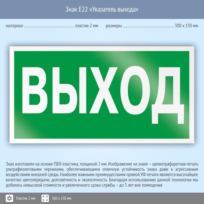 Знак E22 «Указатель выхода» (пластик, 300х150 мм) в Великом Новгороде купить