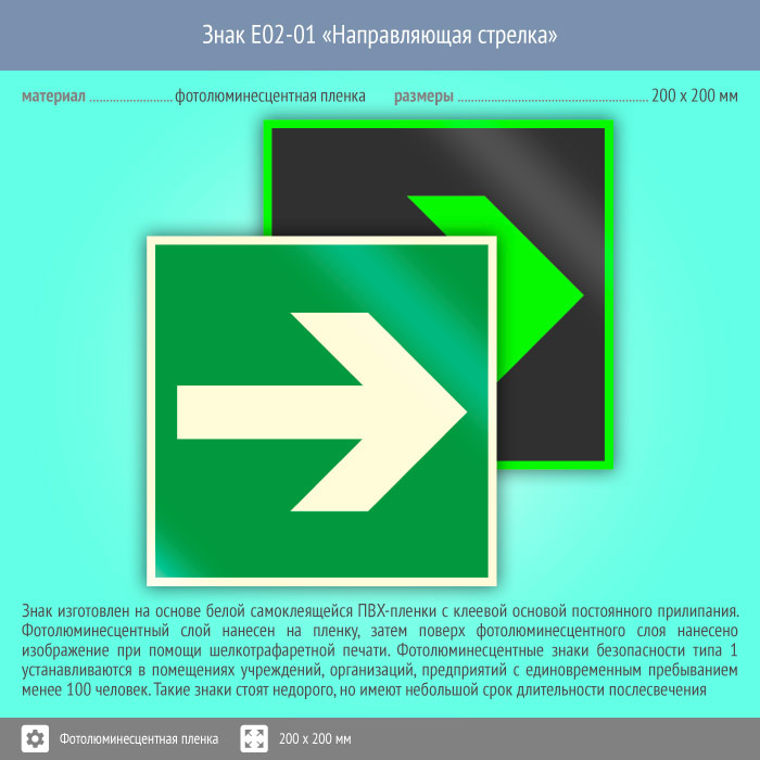 Знак E02-01 «Направляющая стрелка» (фотолюминесцентная пленка, 200х200 мм) в Великом Новгороде купить