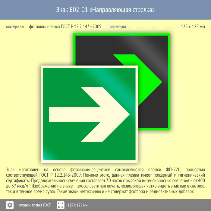 Знак E02-01 «Направляющая стрелка» (фотолюминесцентная пленка ГОСТ 34428-2018, 125х125 мм) в Великом Новгороде купить