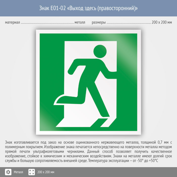 Знак E01-02 «Выход здесь (правосторонний)» (металл, 200х200 мм) в Великом Новгороде купить