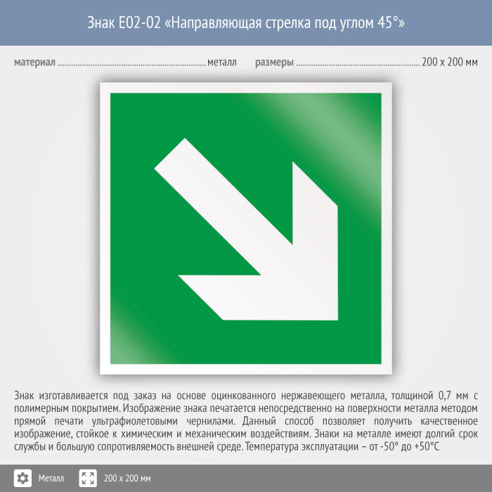 Знак E02-02 «Направляющая стрелка под углом 45°» (металл, 200х200 мм) в Великом Новгороде купить