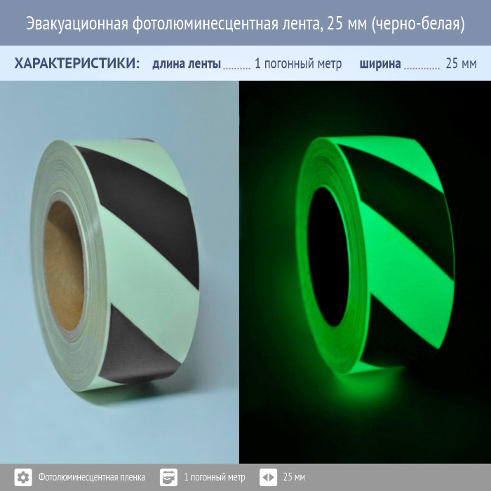 Эвакуационная фотолюминесцентная лента, 25 мм (черно-белая) в Великом Новгороде купить