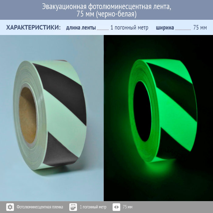 Эвакуационная фотолюминесцентная лента, 75 мм (черно-белая) в Великом Новгороде купить