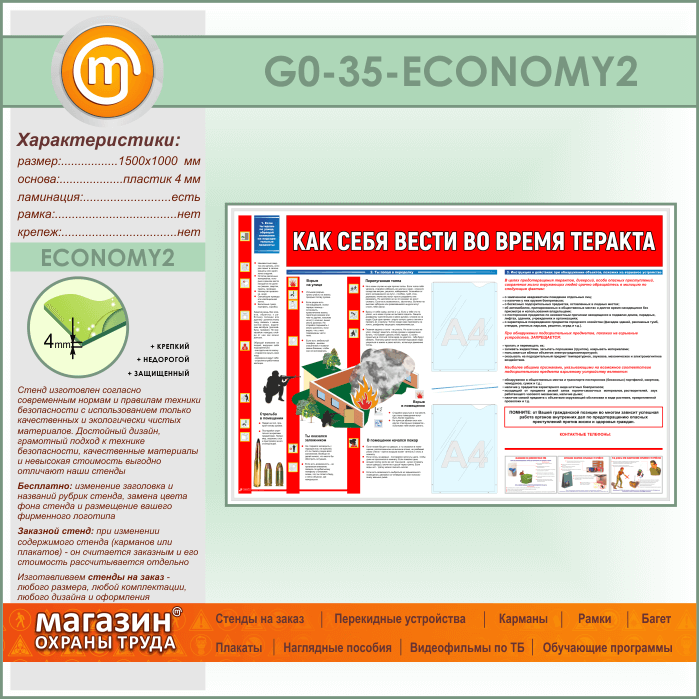 Стенд «Как себя вести во время теракта» c 2 карманами (GO-35-ECONOMY2) в Великом Новгороде купить