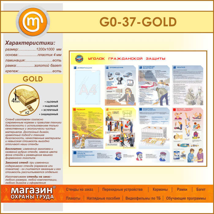 Стенд «Уголок гражданской защиты» с карманом (GO-37-GOLD) в Великом Новгороде купить